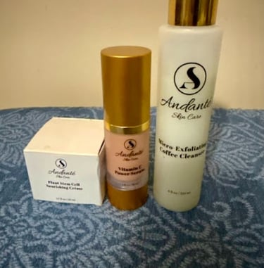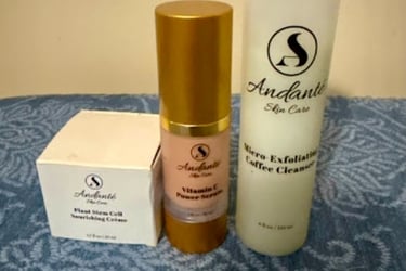 Love Andante skin care products. Within 2 weeks my face looks so radiant and youthful. My face is smooth. I used the coffee cleanser, vitamin c serum and the stem cell cream. I love it. I just purchased the eye serum and Bakuchiol Serum. I can't wait to receive it.